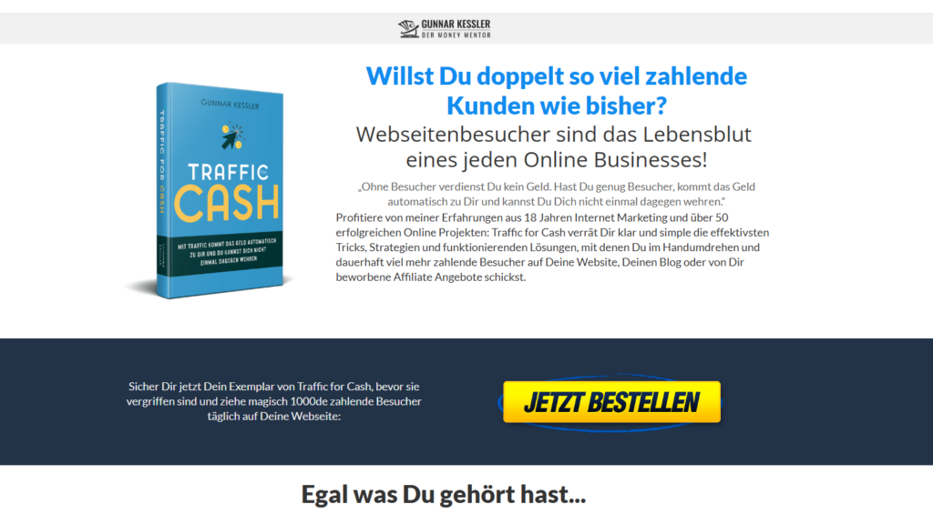 Traffic For Cash ist ein Online‑Training von Gunnar Kessler, das sich auf Strategien zur Generierung von Website‑Traffic konzentriert. Das Programm vermittelt praxisnahe Methoden, wie man Besucher auf Webseiten, Blogs, Online‑Shops oder Affiliate‑Seiten aufmerksam macht.